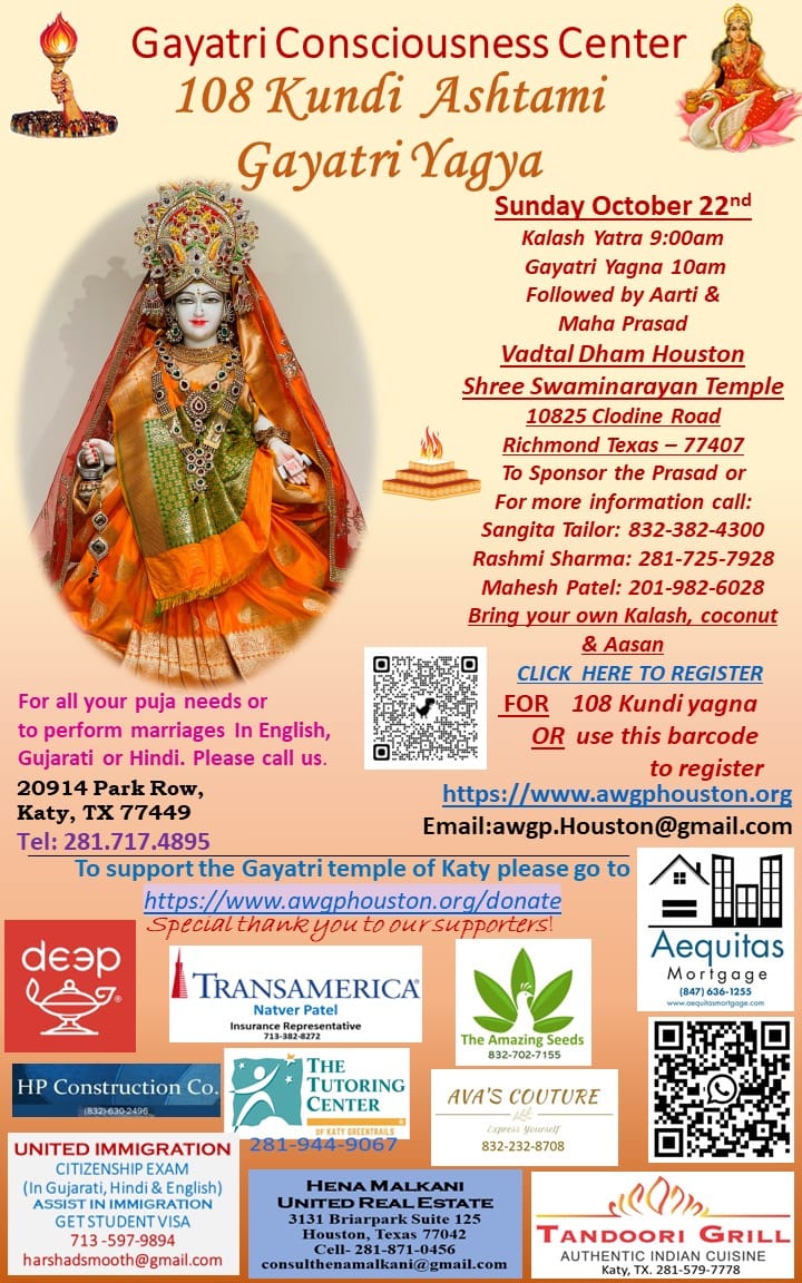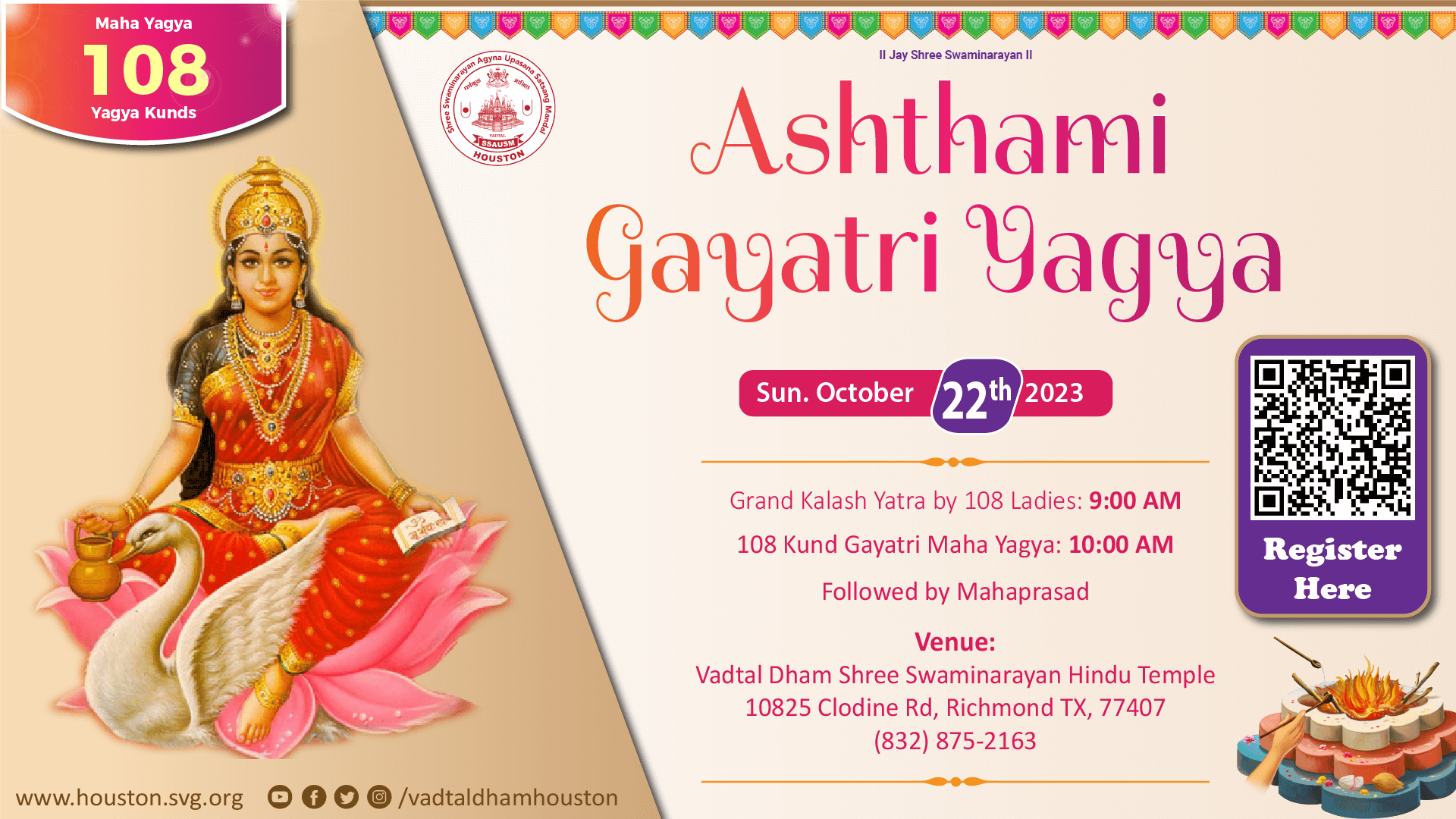 108 Kund Ashthami Gayatri Maha Yagya – Vadtal Dham Houston, TX @ October 22, 2023 22 October, 2023 Click Here To Register